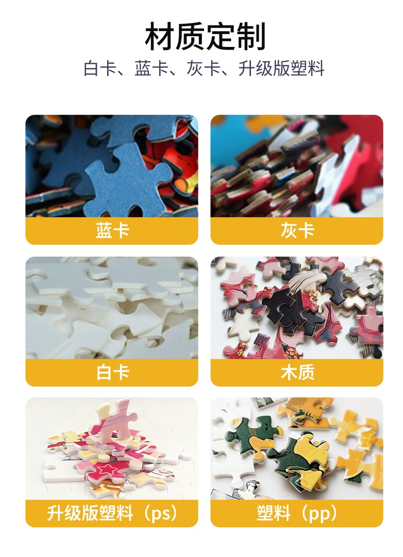 拼圖名稱:木制拼圖異形動(dòng)物 拼圖尺寸:260*330*4.5MM 拼圖片數(shù):201片 加工方式:廠規(guī)、來圖定制 包裝尺寸:220*160*45mm